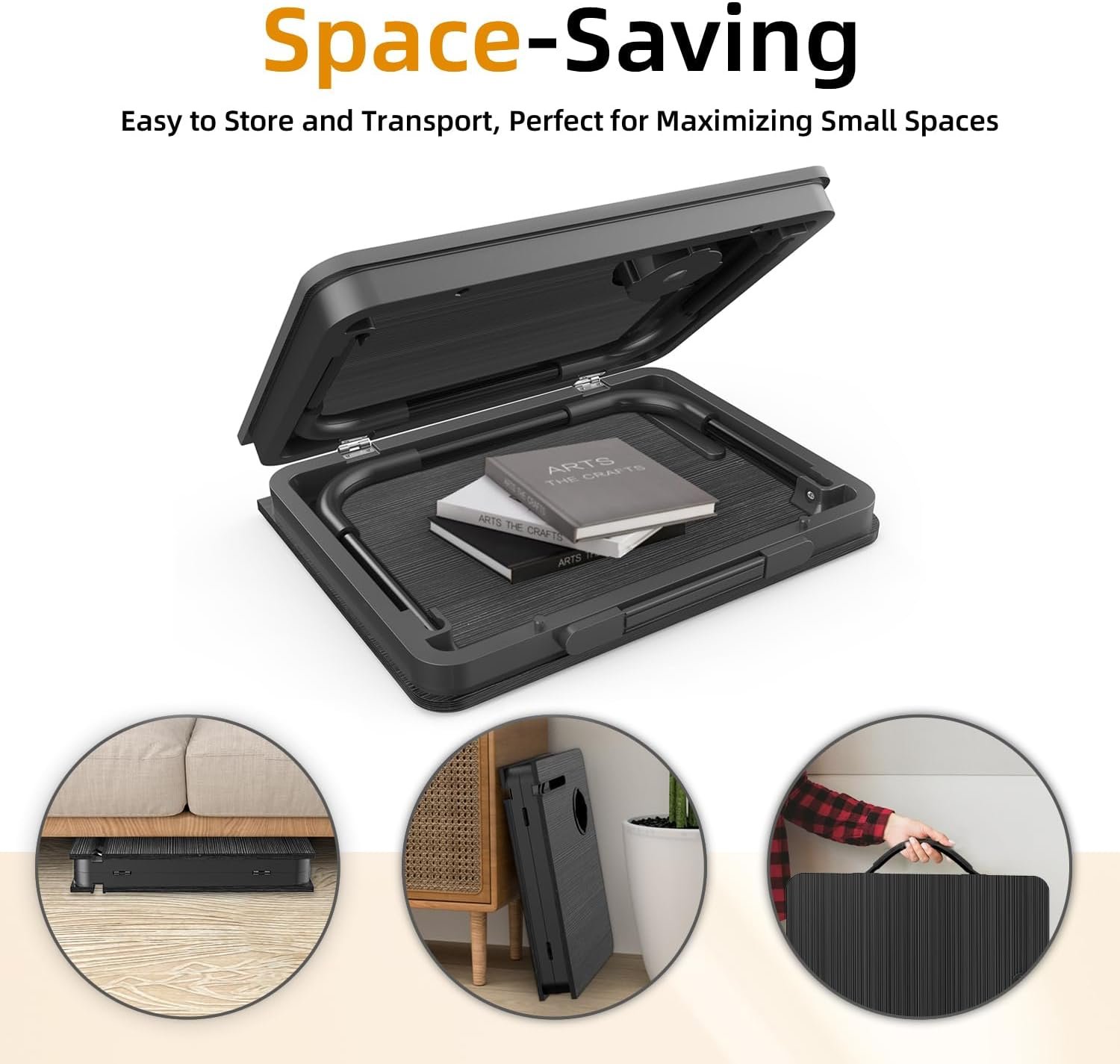 • EASY TO STORE AND PORTABLE: With its lightweight design, this foldable laptop desk can be easily carried from room to room or taken on outdoor trips. After use, fold it up and store it next to the sofa or under the bed without taking up much space.